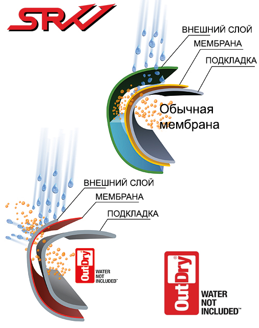 OutDry® является запатентованной технологией, которая обеспечивает защиту от воды (барьер) для верха обуви. Технология состоит из процесса ламинирования дышащащей мембраны непосредственно к внутреннему слою верха ботинка (изнутри). Это заметно отличается от других процессов гидроизоляции, отсутствием воздушного зазора между внешней повехностью ботинка и подкладкой из мембраны, Это означает, что обувь носится дольше, а вода не попадает в промежуток между подкладкой и внешним слоем верха ботинка.