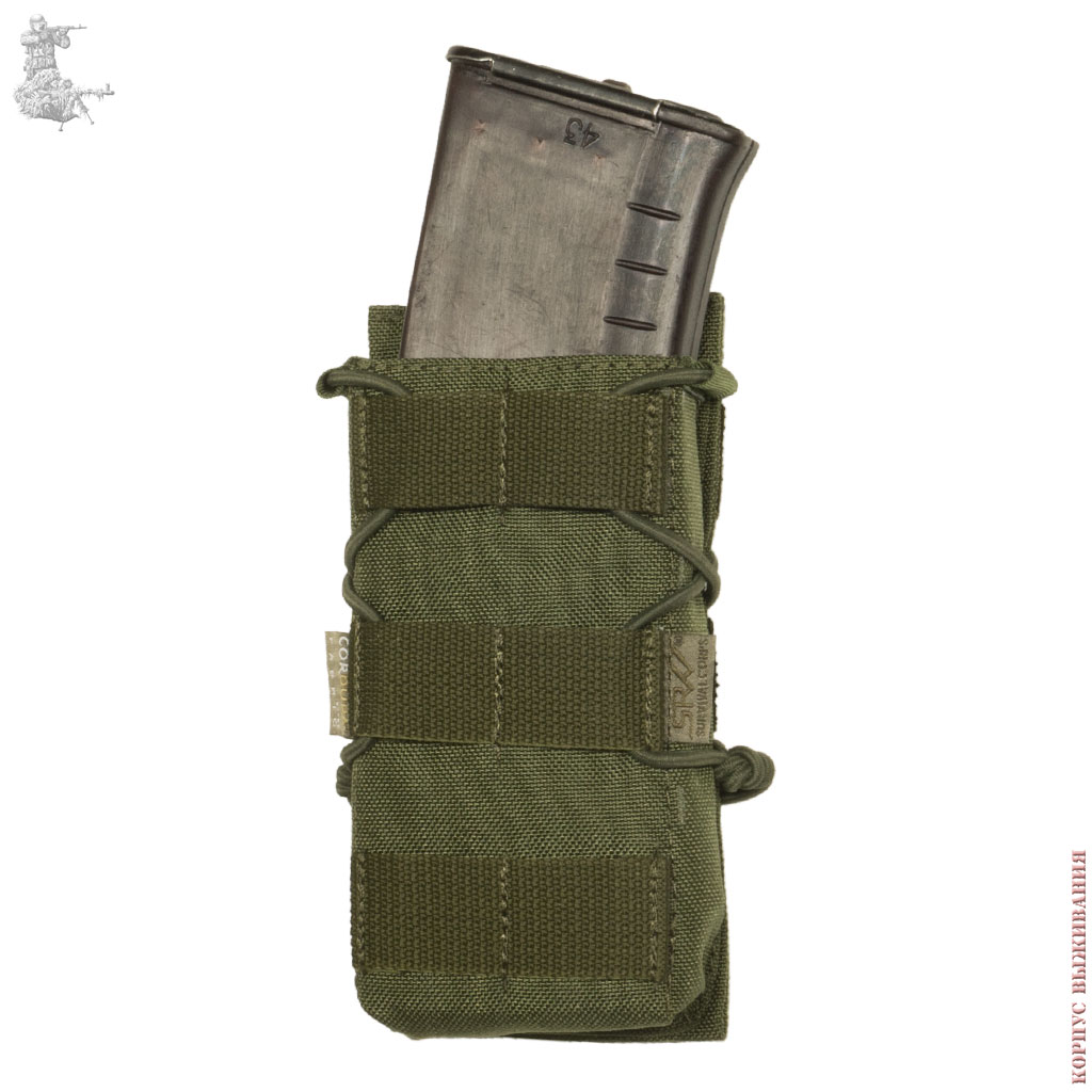 Очень надежная конструкция даже при обрыве одного или двух эластичных шнуров притягивающих магазин сохраняет работоспособность и целостность, нет пластиковых элементов по бокам, что позволяет сильнее притягивать магазин и быстро доставать. Двойной слой CORDURA 1000 D для надежности. При экстремальных плюсовых и минусовых температурах ничего не треснет и не развалится. Сделано чтобы служить долго.