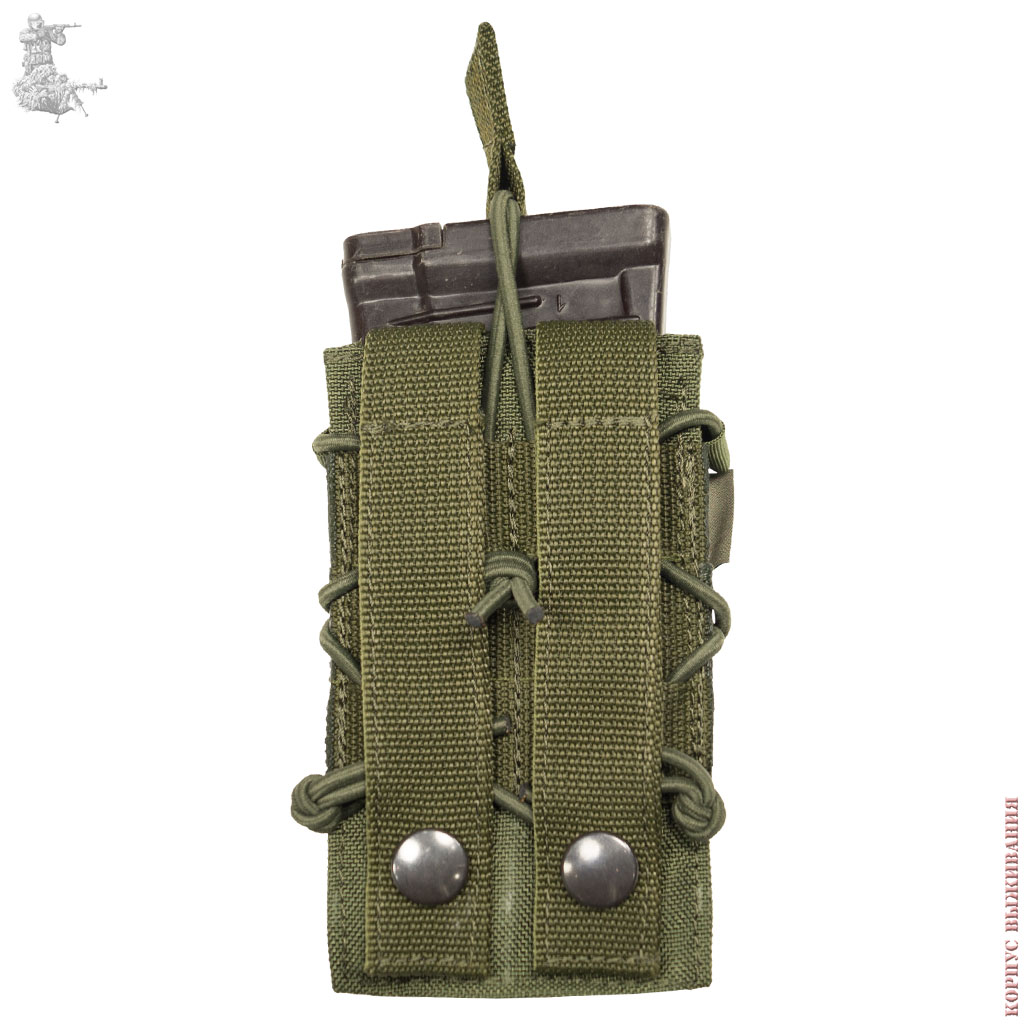 Очень надежная конструкция даже при обрыве одного или двух эластичных шнуров притягивающих магазин сохраняет работоспособность и целостность, нет пластиковых элементов по бокам, что позволяет сильнее притягивать магазин и быстро доставать. Двойной слой CORDURA 1000 D для надежности. При экстремальных плюсовых и минусовых температурах ничего не треснет и не развалится. Сделано чтобы служить долго.