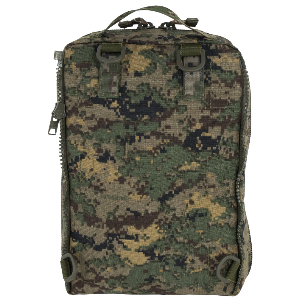 Ранец содержит три больших съемных кармана, два маленьких съемных кармана, съемный органайзер, съемные лямки. Внутри есть два ряда крепления для жгутов и ИПП, два кармана на молнии для оборудования типа шин. Дополнительно можно купить грудную стяжку и ZIP адаптеры для расширения возможностей использования ранца. При помощи ZIP адаптера можно так же прикрепить ранец к жилету или еще один ранец к внешней панели с MOLLE или прикрепить небольшие аптечки, чехол для ножниц и т д.