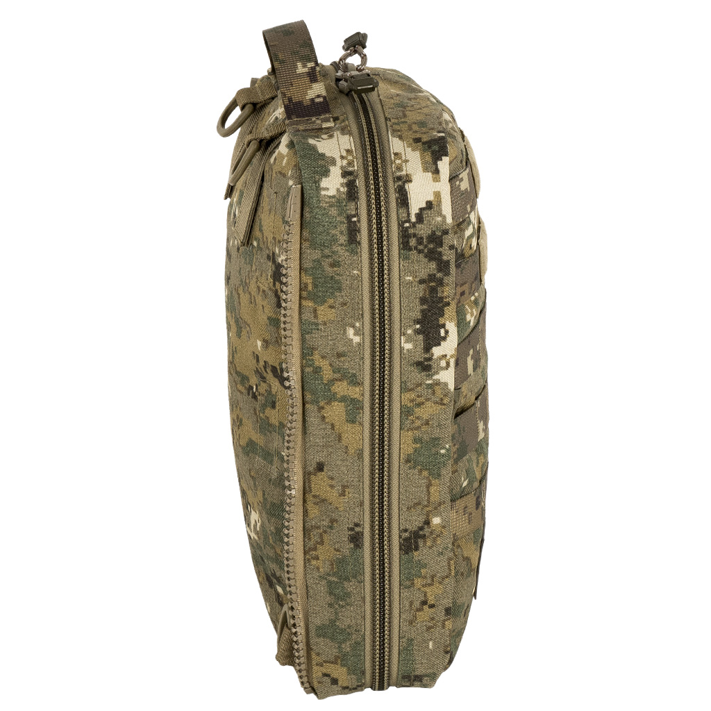 Совместно с военными медиками мы сконструировали универсальный ранец для парамедика на отделение. Делался ранец под конкретное наполнение для оказания первой помощи на поле боя. Конструкция ранца позволяет носить его как рюкзак на лямках и как подсумок на жилете, бронежилете закрепив на спине при помощи ZIP адаптеров.